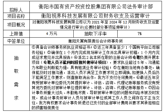 衡陽視界科技發(fā)展有限公司財(cái)務(wù)收支及運(yùn)營審計(jì)項(xiàng)目抽取結(jié)果公示