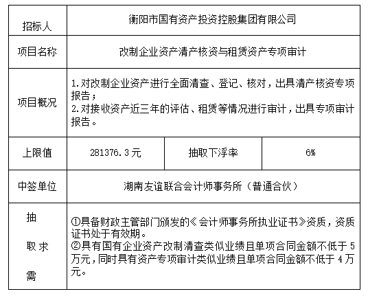 改制企業(yè)資產(chǎn)清產(chǎn)核資與租賃資產(chǎn)專項審計抽取結(jié)果公示